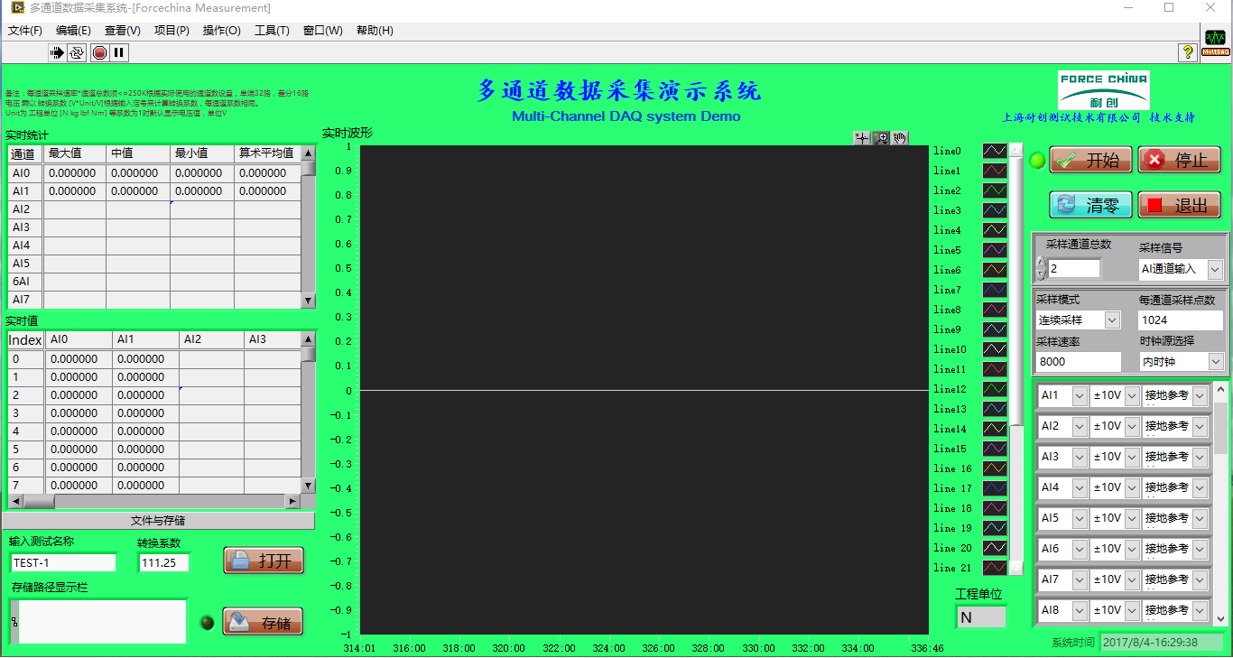 上海耐創測試根據客戶需求,可開發實時提供支持單軸力,三軸力,扭矩,多維力/力矩采集軟件,測試結果支持保存,查看,離線分析等工能。