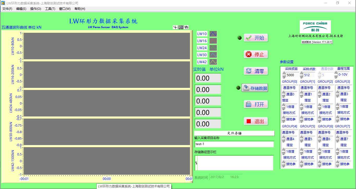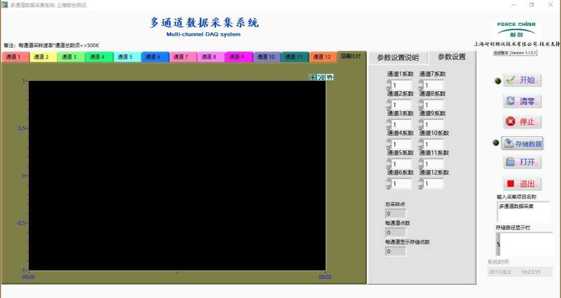 界面如下:包含單通道,三通道(配三分力傳感器),六通道(配六維力傳感器)以及多通道數(shù)據(jù)采集軟件;