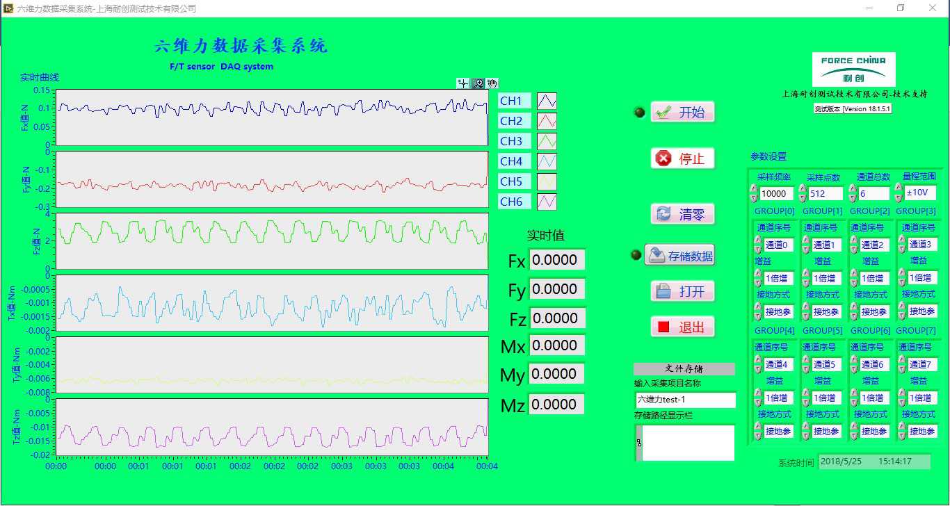 六維力數(shù)據(jù)采集系統(tǒng)(包含矩陣運(yùn)算),顯示F/T