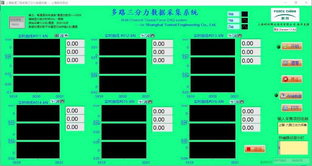 原始案例用于某隧道工程盾構(gòu)試驗(yàn),采用6只三軸力傳感器,共18通道,實(shí)現(xiàn)數(shù)據(jù)的實(shí)時(shí)采集和存儲(chǔ);