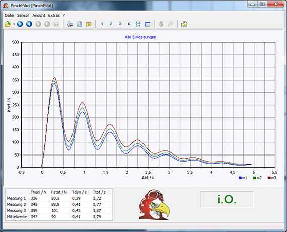 顯示峰值力和通過/失敗評估