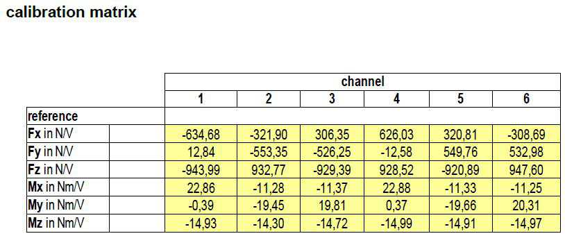 例如:(某六維力傳感器標定證書數據)