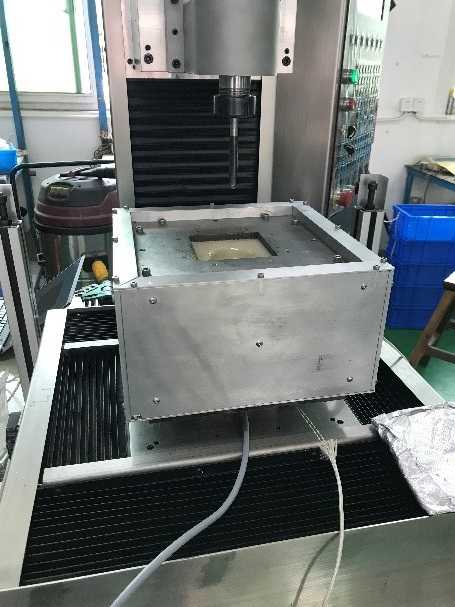 設(shè)備主體包含一個(gè)四軸聯(lián)動(dòng)控制平臺(tái)和一個(gè)加熱爐以及其他固件,加熱爐對(duì)被塑形材料【有機(jī)玻璃】進(jìn)行加熱,內(nèi)部溫度可控制在180℃~250℃,這時(shí)控制平臺(tái)和刀具聯(lián)動(dòng),沿著設(shè)計(jì)好的運(yùn)動(dòng)軌跡對(duì)被加熱的玻璃纖維材料進(jìn)行塑形;