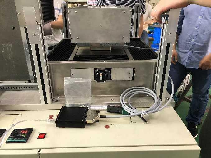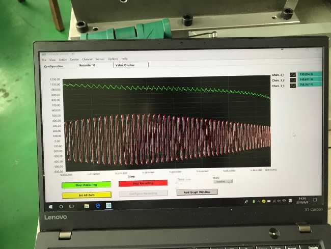 傳感器被安裝在加熱爐底部的固支平臺(tái)上,作為測(cè)試部件串聯(lián)在結(jié)構(gòu)中,平臺(tái)下方是三軸聯(lián)動(dòng)機(jī)床,測(cè)試過程中,我們對(duì)傳感器的受熱溫度進(jìn)行監(jiān)測(cè),發(fā)現(xiàn)傳感器上方安裝板的溫度在40℃左右,這個(gè)溫度并不影響傳感器的使用;